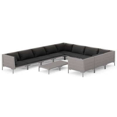 vidaXL Patio Lounge Set Outdoor Sectional Corner Sofa Poly Rattan Dark Grey