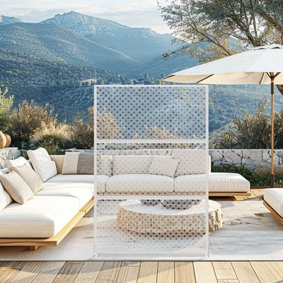 Pexfix 72 x 47 Inch Metal Privacy Screen Freestanding Outdoor Divider Panel For Patio Deck Balcony Heavy Duty Base Weatherproof White Parallel