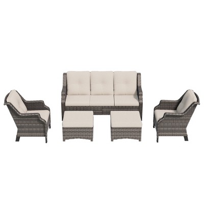 HAPPATIO 5 Piece Patio Conversation Set,All-Weather Patio Furniture Set, Wicker Outdoor Sectional Sofa