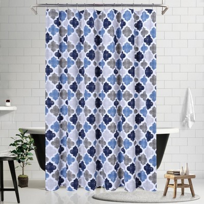 Modern Geometric Shower Curtain, Poly-Cotton Blean with Quatrefoil Design for Bathroom