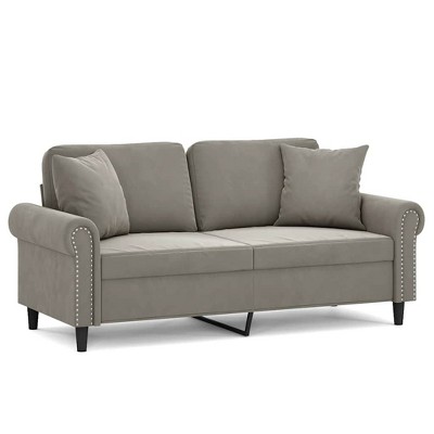 vidaXL 2-Seater Sofa with Pillows&Cushions Light Gray 55.1" Velvet