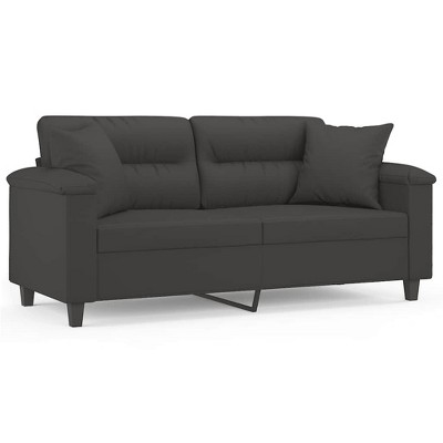 vidaXL 2-Seater Sofa with Pillows&Cushions Dark Gray 55.1" Microfiber Fabric