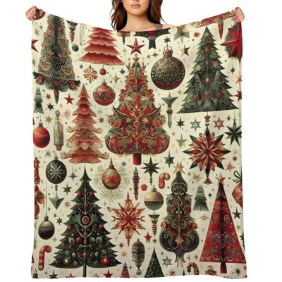 FIONECA Beige Whimsical Christmas Tree Pattern Rustic Festive Throw Blanket Holiday Home Decor 50x60 inches