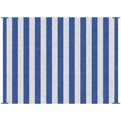 Outsunny Outdoor Patio Rug, Large Camping Carpet with Carrying Bag, 8' x 10' Waterproof Plastic Straw, Reversible, Blue & White Geometric