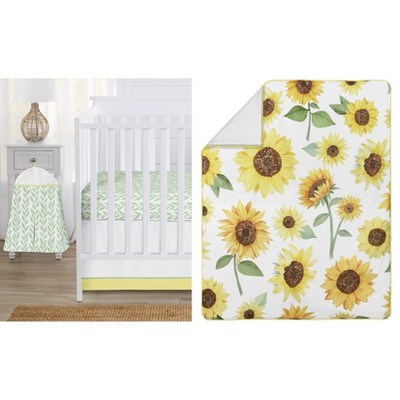 Sweet Jojo Designs Girl Baby Crib Bedding Set - Sunflower Yellow Brown and Green 4pc