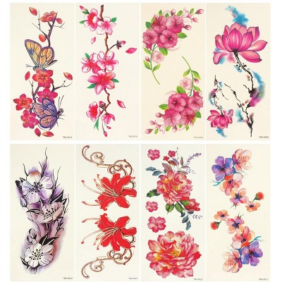 Wrapables Floral Temporary Tattoos Body Art Water Tattoos (8 Sheets)