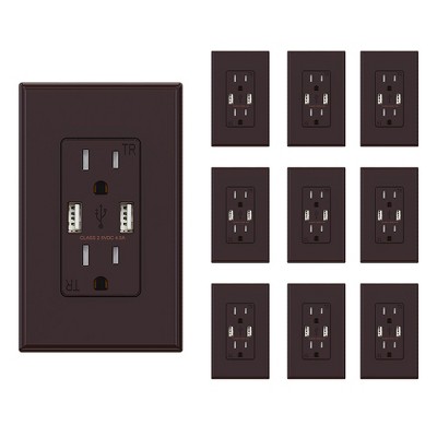 ELEGRP 3 Ports Dual Type A & Type C USB Charger Wall Outlet, 20 Amp Tamper-Resistant Outlet, with Wall Plate, White(10 Pack)