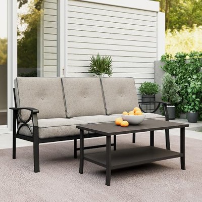 Heynemo Outdoor Patio Furniture Set, 2 Piece Patio Conversation Set, Metal Furniture Set with 3 seat Sofa
