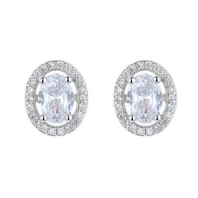 Guili Sterling Silver Rhodium Plated Clear Oval and Round Cubic Zirconia Halo with Cluster Post Drop Earrings, a Sophisticated Classic Style