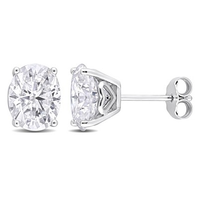 EVERLY JEWELRY | Sterling Silver 4 CT DEW Oval Created White Moissanite Stud Earrings