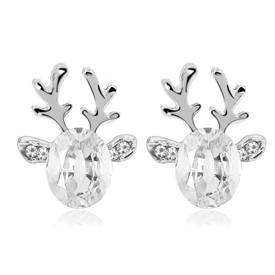 Reindeer Stud Earrings for Women White Gold Plated CZ Christmas Jewelry Ginger Lyne Collection