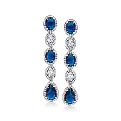 Ross-Simons 9.50 ct. t.w. Sapphire Star Drop Earrings With Diamonds in 18kt Gold Over Sterling