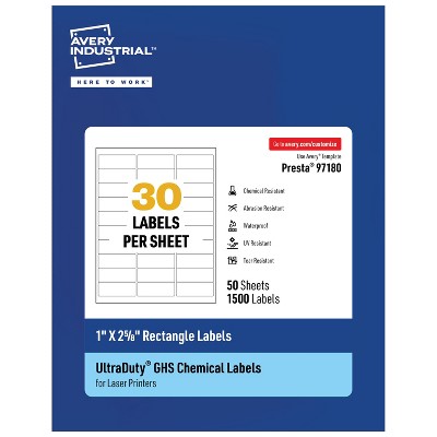 Avery UltraDuty GHS Labels, Waterproof, 1 x 2-5/8 Inch Rectangle Labels, for Use with Laser Printers
