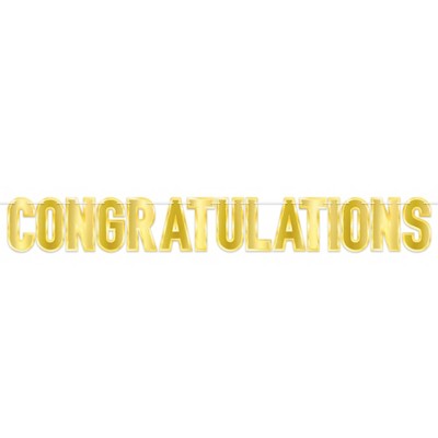 Beistle Foil Congratulations Streamer, 7" x 5' 6", (2/Pkg) Gold