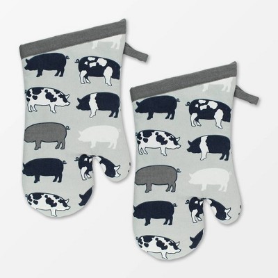 2pk Designer Pigs Print Oven Mitt - MU Kitchen: Farmhouse Kitchen Textiles, Cotton Hot Pads, Animal Prints