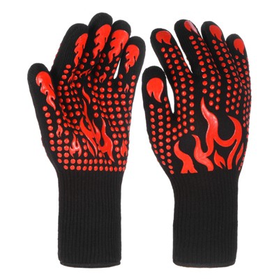 Unique Bargains Silicone Heat Resistant Fireproof Grilling Gloves 1472°F High Temp Resistance 1 Set