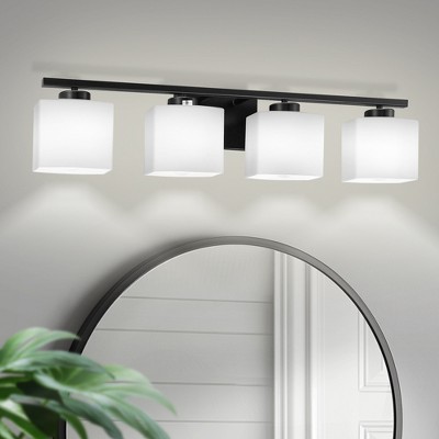 DORESshop 31 in. Modern 4-Light Vanity Wall Lamp with Matte Black Finish, Square Rod and Shade, E26 Base, Non-Integrated Light Source