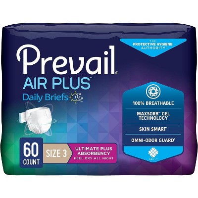Prevail Air Overnight Unisex Adult Incontinence Briefs, Refastenable Tabs, Overnight Absorbency