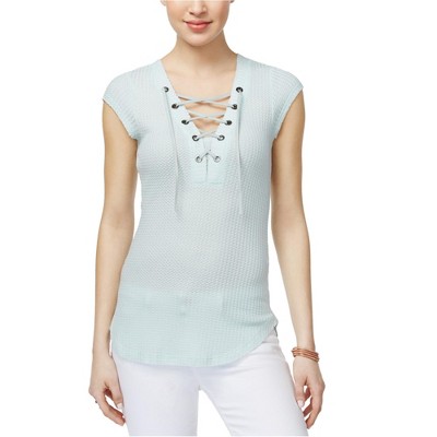 maison Jules Womens Bow-Stripe Collared Pullover Blouse