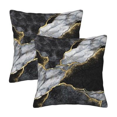 Marble Black and Gold Throw Pillow Covers 18x18 in Set of 2, Decor Black Grey