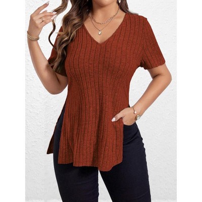 Women's Chic V-Neck Ribbed Knit Top - Cupshe