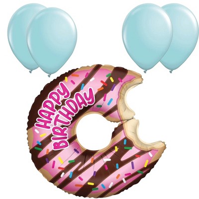 LoonBalloon 28 Inch Donut Birthday Balloon with 4 latex balloons- Sweet & Festive
