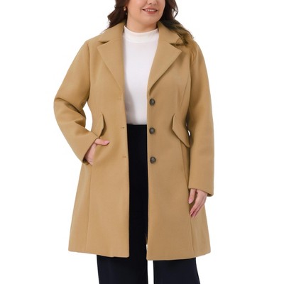 Women's Plus Size Notch Lapel Single Breasted Trendy Dressy Fall Winter Midi Pea Coat - Agnes Orinda