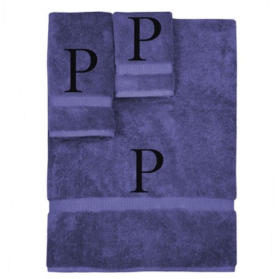 BC BARE COTTON Monogrammed Towel Set, Personalized Gift, Set of 3 - Navy - Black Block