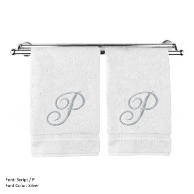 BC BARE COTTON Monogrammed Bath Towel, Personalized Gift, 27 x 54 inches - Set of 2 - Gray - Silver Script