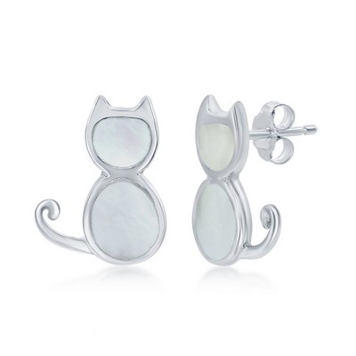 Bella Silver Sterling Silver White MOP Cat Stud Earrings
