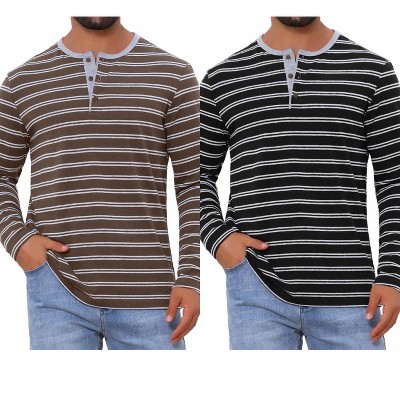 INSPIRE CHIC Men's Long Sleeves Contrasting Colors Striped Henley T-Shirts 2 Packs