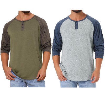 INSPIRE CHIC Men's Casual Raglan Long Sleeves Tee Shirt Henley T-Shirts 2 Packs