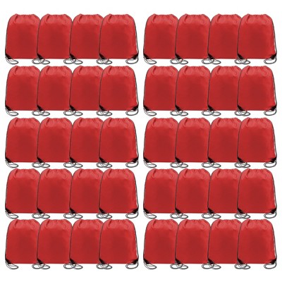Narwey Red Drawstring Backpack Bulk 40 Pack Wholesale, Drawstring Bags for Christmas Party Gym Sport Trip,Cinch Sack Machine Washable