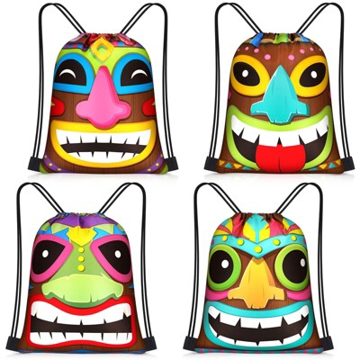 Narwey 24 Pcs Hawaiian Aloha Drawstring Bags Tiki Luau Gift Bags Set Bulk 12 x 10 Inch Waterproof Beach Sack Pack Hawaiian Party Supplies