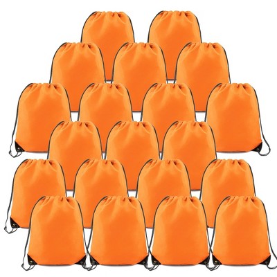 Narwey 20 Pieces Orange-String-Bag-Pack-Bulk Durable Cinch Gym Sacks Backpacks Large Size