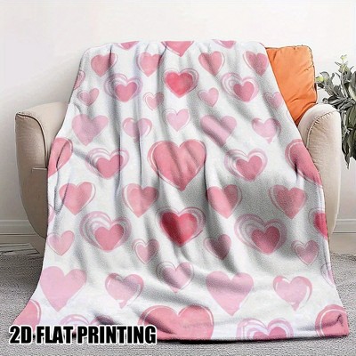 Lomsoe 1pc Soft Valentines Heart Flannel Throw Blanket - Ideal for Sofa, Bed, Chair, and Family Theater.