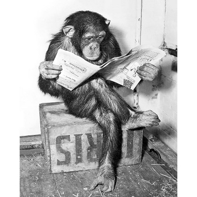 Poster Master Chimpanzee Reading Newspaper