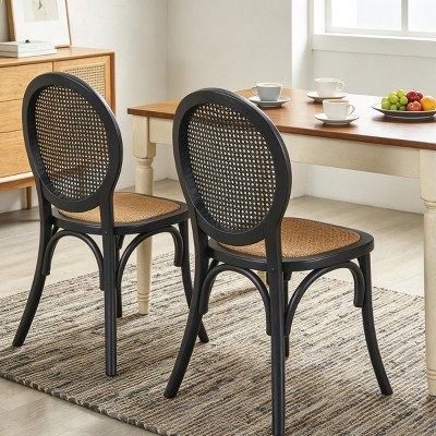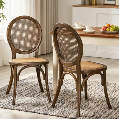 ModernLuxe Vintage Cane Dining Chairs Set of 2, Elm Wood Rattan Chairs with Round Back, Farmhouse Side Chairs