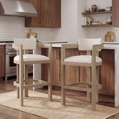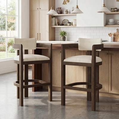 ModernLuxe Rubberwood Bar Stools, Upholstered Accent Stools with Arm & Curved Padded Backrest - Set of 2