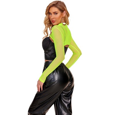 Avidlove Mesh Crop Tops for Women Mock Neck Long Sleeve Crop Top Clear Shirt Top Clubwear