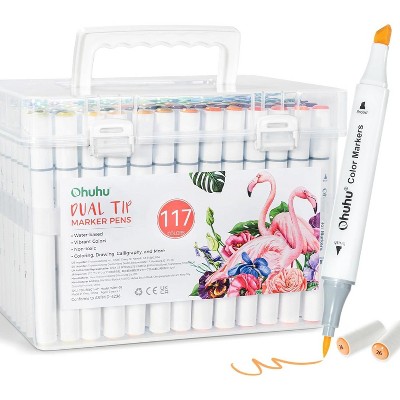 Ohuhu Markers for Adult Coloring Books No Bleeding 116 Colors Water-based Drawing Pens Dual Tips Chisel & Brush Art Markers Brush Pens