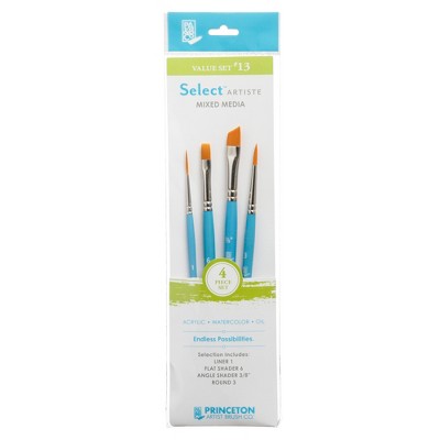 Princeton Select Artiste Angle Spot Detailer Brush, Synthetic Bristles, Short Handle Mixed Media Paintbrush, Jewel Blue, Size 10/0, Pack of 3
