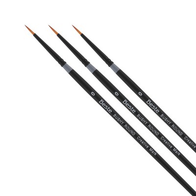 Creative Mark Beste Golden Taklon Bushy Round #0 - 3 Pack Artist Paint Brush, Professional Watercolor Brushes, For Acrylic Painting, Short Handle,