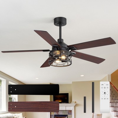 Parrot Uncle 52" Black Ceiling Fan with Light and Remote Control for Bedroom Living Room