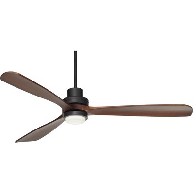 Casa Vieja 54" Sierra Modern Indoor Outdoor Ceiling Fan 3 Blade LED Light Remote Control Emperial Bronze Finish Brown Blades Bedroom Patio Damp Rated
