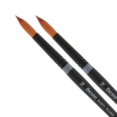 Creative Mark Beste Golden Taklon Bushy Round, # 12 - 2 Pack Artist Paint Brush, Professional Watercolor Brushes, For Acrylic Painting, Short Handle,