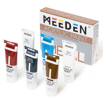 MEEDEN 6-color Metallic Acrylic Paint, 120 ml/4.06 oz Tubes Heavy Body Acrylic Paint Set, Rich Pigments Non-Toxic Art & Craft Paints for Artists