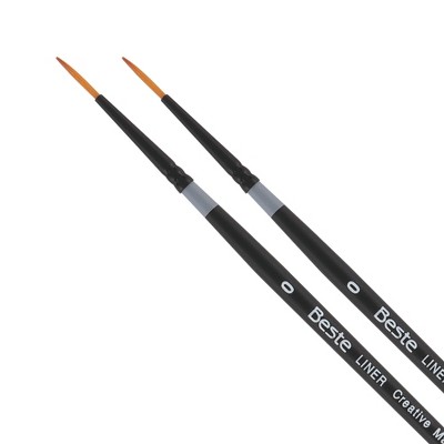 Creative Mark Beste Golden Taklon Liner #0 - 2 Pack Artist Brush, Professional Watercolor Brushes, For Acrylic Painting, Short Handle, Sharp Edges,
