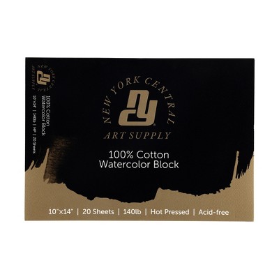 New York Central Watercolor Block, 140 lb Cold Press, 20 Sheets, Archival Watercolor Paper for Artists, Students, Gelatin Sized, Durable Water Color