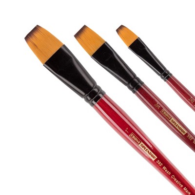 Creative Mark Ebony Splendor Short-Handle Synthetic Sable Paint Brush, Wash Set of 3, Teijin Multi-Filament Hair, Handcrafted Synthetic Paint Brushes